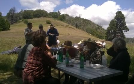 The wind was pleasantly calm at the Ferguson Flat picnic area as the group enjoyed a delicious al fresco lunch with sandwiches provided by Sustaining Friends, Anita Nichols and Mom’s Pie House. After lunch the group reflected on the mission activities of the Volcan Mountain Foundation—building connections and partnerships for acquisitions, restoring and managing conserved land and engaging people of all walks to understand, care for, and protect the Volcan Mountain Range—and the vital importance of the contributions from the Sustaining Friends group to further these efforts.
